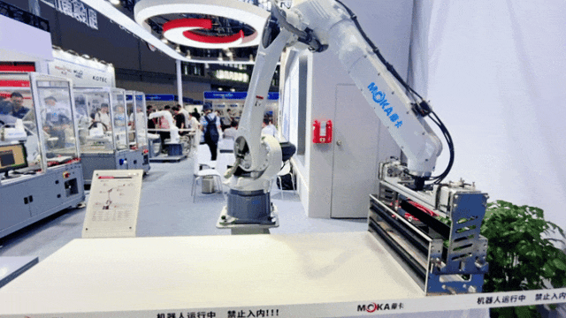 藦卡機器人與奧太、江龍智能、創想智控、柏楚等公司合作,將國產品牌的實力展現給大家?,F場藦卡共呈現10臺工作站,展位參觀觀眾絡繹不絕,國內外觀眾紛紛駐足,眾多行業專家和觀眾對針對藦卡機器人展機及解決方案表現出濃厚的興趣和高度認可。